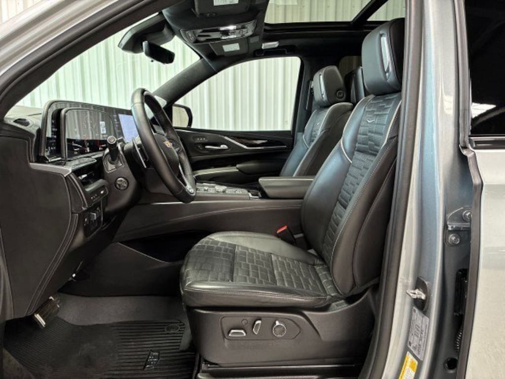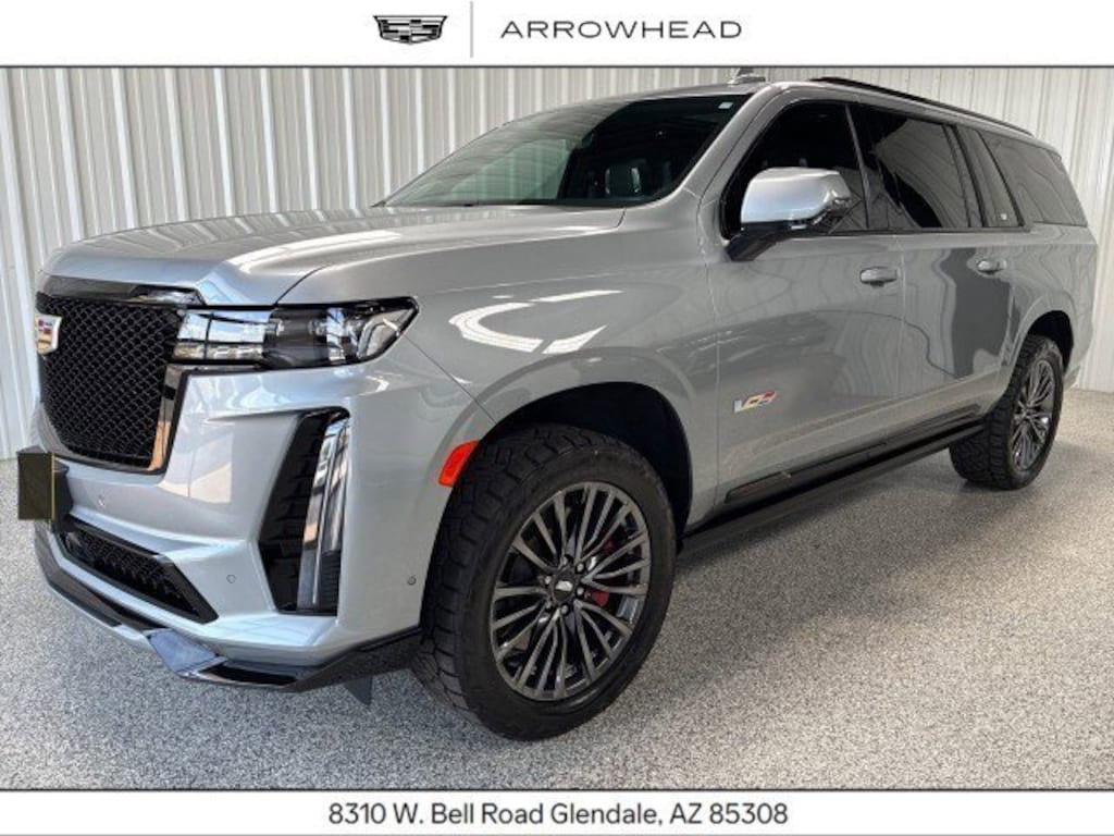 Command the Road with the 2024 Cadillac Escalade ESV V-Series: Power, Luxury, and Advanced Safety in a Striking Argent Silver Metallic FinishExperience the thrill of driving the 2024 Cadillac Escalade ESV V-Series, a powerhouse of performance and luxury. Under the hood, the 6.2L V8 Supercharged engine delivers exhilarating power, paired with a 10-speed automatic transmission for seamless acceleration. The all-wheel drive ensures confident handling, whether navigating city streets or rugged terrains.Inside, indulge in the opulence of leather seats with massage functionality, heated and cooled options, and customizable lumbar support for both driver and passenger. The third-row seating offers ample space for family or friends, while the panoramic roof enhances every journey with breathtaking views.Stay connected and entertained with the premium sound system, integrated navigation, and smart device integration. The heads-up display keeps vital information in your line of sight, while the aerial view display system aids in precision parking. Safety is paramount, with features like night vision, lane keeping assist, and rear collision mitigation providing peace of mind on every drive.The Argent Silver Metallic exterior, complemented by power retractable running boards and aluminum wheels, exudes sophistication and style. The 2024 Cadillac Escalade ESV V-Series is not just a vehicle; it's a statement of power and luxury.?