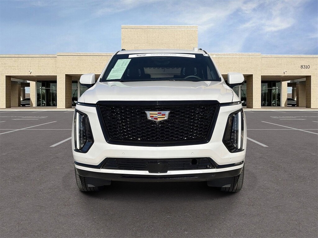 Certified. Local GM Company car. Recent Arrival! Clean CARFAX. Cadillac Certified Pre-Owned Vehicle with additional 1 year Unlimited Mileage, Limited Warranty, 4WD, Jet Black Leather, 2-Speed Active Transfer Case, Air Ride Adaptive Suspension, AKG Studio Reference 36-Speaker Audio System, Blind Zone Steering Assist with Trailering, Door Lock and Latch Shields, Electronic Limited-Slip Differential, Floor Console with Covered Storage, Front Auxiliary 12-Volt Power Outlet, Glass Breakage Sensor, Heated and Ventilated Driver and Front Passenger Seats, Hitch Guidance with Hitch View, Illuminating Front and Rear Sill Plates, Integrated Trailer Brake Controller, Magnetic Ride Control Suspension, Next Generation Active Noise Cancellation, Night Vision, Platinum Interior Trim, Power Lumbar Massage Driver Seat, Power Lumbar Massage Front Passenger Seat, Power Open/Close Doors, Power Panoramic Tilt-Sliding Sunroof, Power-Retractable Assist Steps, Preferred Equipment Group 1SH, Rear Seat Entertainment System, Reconfigurable Full-Color Head-Up Display, Smart Trailer Integration Indicator, Soft Closing Front and Rear Doors, Split folding rear seat, Theft-Deterrent Alarm System, Touring Package, Trailering App, Trailering Assist Guidelines, Vehicle Inclination Sensor, Vehicle Interior Movement Sensor. Crystal White Tricoat 2025 Cadillac Escalade Sport Platinum 4WD 6.2L V8