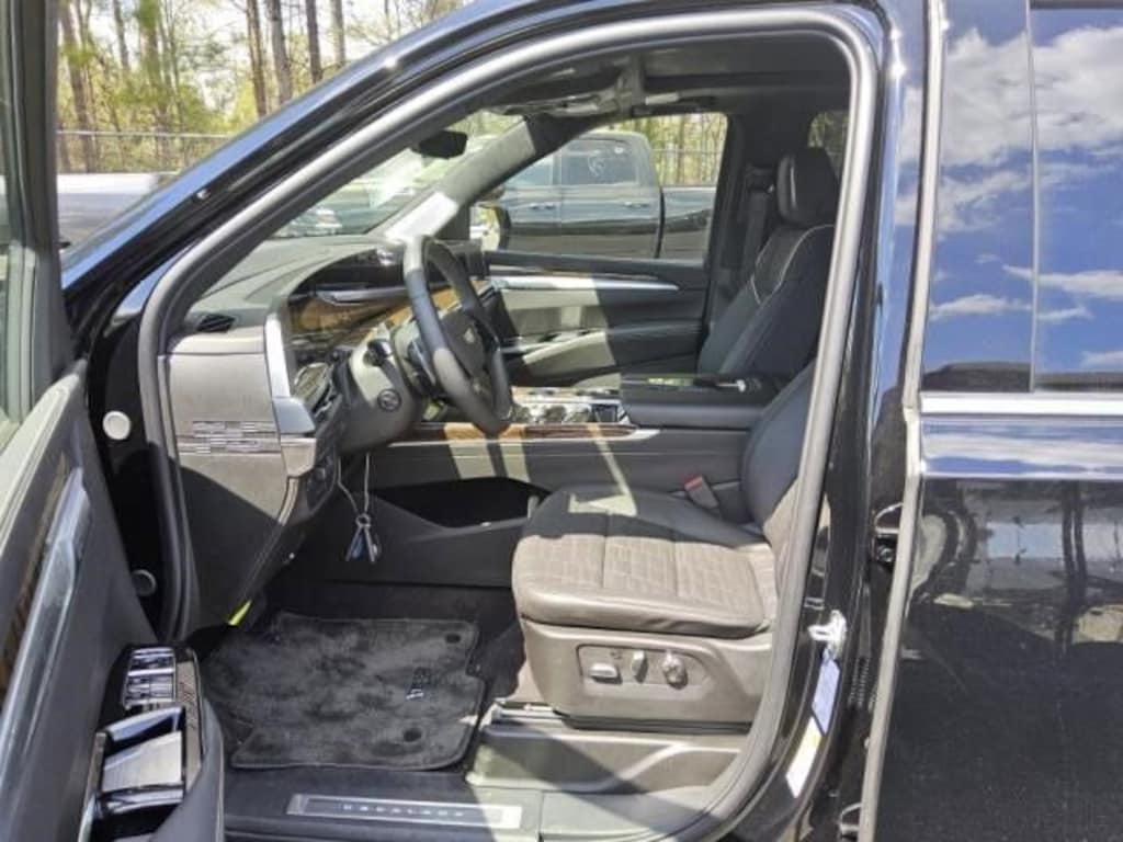 This Escalade ESV is powered by a robust 6.2L V8 engine paired with a sophisticated 10-speed automatic transmission, delivering smooth, confident performance whether navigating city streets or open highways. Its advanced four-wheel-drive system and active air suspension ensure a composed ride and exceptional handling in all conditions. Step inside to discover a sanctuary of comfort featuring heated and cooled leather seats with massage functions and memory settings, perfect for long journeys or daily commutes. The panoramic sunroof floods the cabin with natural light, while the power retractable running boards provide effortless access.