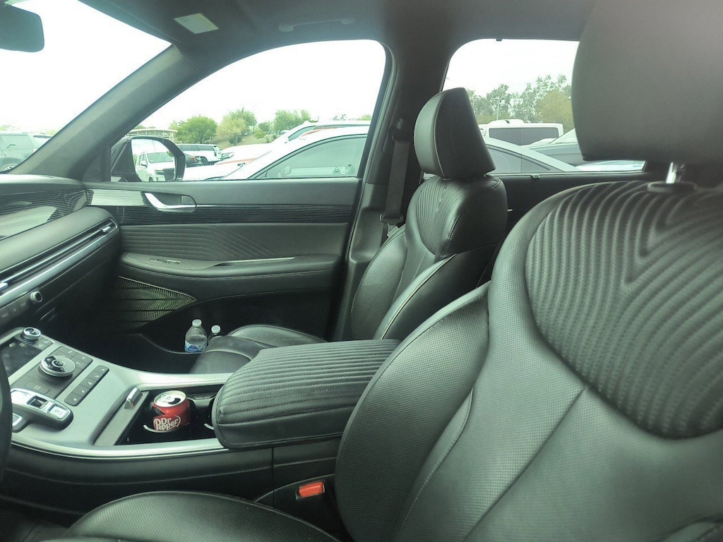 Step into a world of refined elegance and robust performance with the 2023 Hyundai Palisade Calligraphy. This used gem, dressed in a mesmerizing Abyss Black Pearl, is more than just a vehicle—it's a statement. Under the hood, the V6 engine paired with an 8-Speed Automatic with Shiftronic transmission offers a seamless driving experience, ensuring you're always in control whether cruising city streets or exploring winding country roads. The Palisade Calligraphy’s interior is meticulously crafted, offering premium Nappa leather seating and ambient lighting that transforms every drive into a luxurious escape. Advanced safety features, including Blind-Spot View Monitor and Highway Driving Assist, provide peace of mind on every journey. The expansive panoramic sunroof invites the outside in, creating an open, airy atmosphere for all passengers. With its intuitive infotainment system, complete with a 12.3-inch digital instrument cluster and a 10.25-inch touchscreen, staying connected and entertained is effortless. The 2023 Hyundai Palisade Calligraphy is designed for those who demand the best in style, comfort, and technology. Embrace the road ahead with a vehicle that truly reflects your discerning taste.